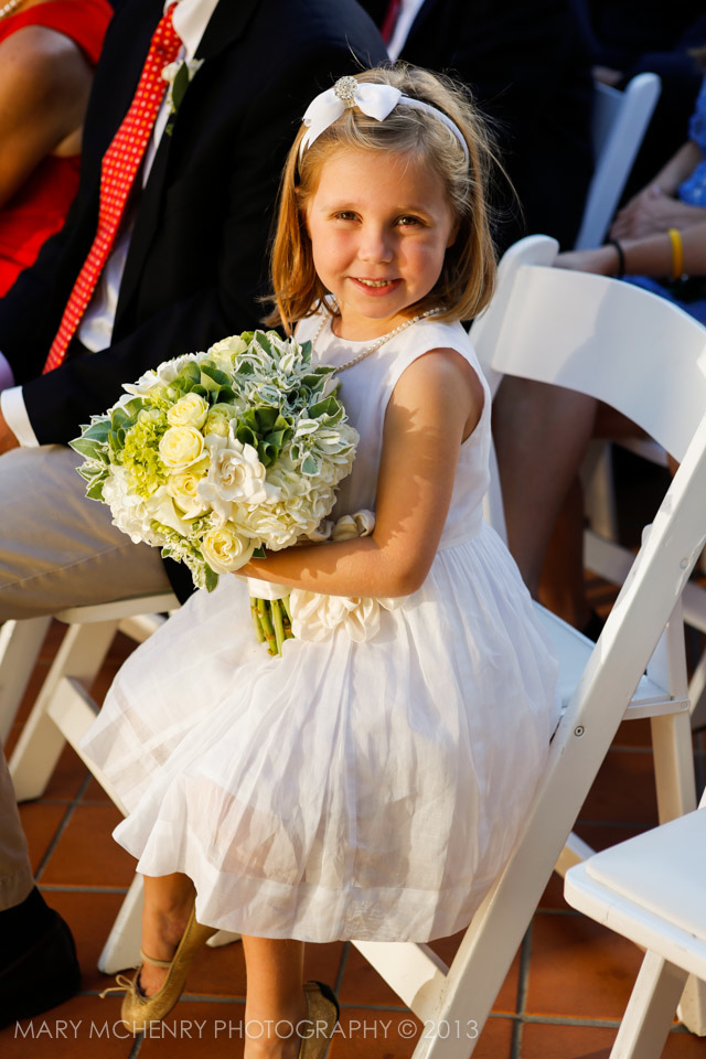 I’ve been to many a wedding in which all kind of deviances from the plan have taken place: the frozen flower girl, the giggly flower girl, the speedy flower girl, or the distracted flower girl, to name a few. As with all aspects of wedding planning, it’s best to be at least a little prepared that this small part of the day may not go exactly as planned. But then again, most of these unexpected (often adorable) moments are what people talk about over brunch the next morning. I remember one close friend’s wedding at the beach. There was the flower girl lying on her stomach drawing circles in the sand with a stick. It made for a gorgeous, innocent photo mainly because it was such a precious, spontaneous moment, and it didn’t take away from the ceremony. Everyone proceeded as planned rather than trying to usher the little girl away and put her back in her “place.” Sure, this might have worked so well since the backdrop was a beach – an innately relaxed locale, but I think the bride and groom’s relaxed attitude towards the children also helped to create a stress-free atmosphere.