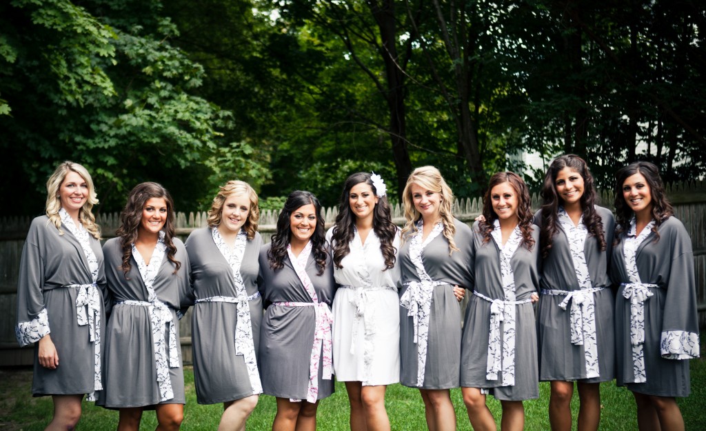 I am SO happy I purchased these beautiful bridesmaid robes – they were the perfect gift for my bridesmaids!  Sara was so incredible easy to work with and was so flexible. Everyone was in a panic about what to wear the morning of – tank top, short, yoga pants – but they were so happy to open these gifts the night before! I chose white for myself, and wanted a matching look for all my maids. I was so happy to find an almost identical, but slightly different robe for my maid of honor to wear – it helped her stand out!