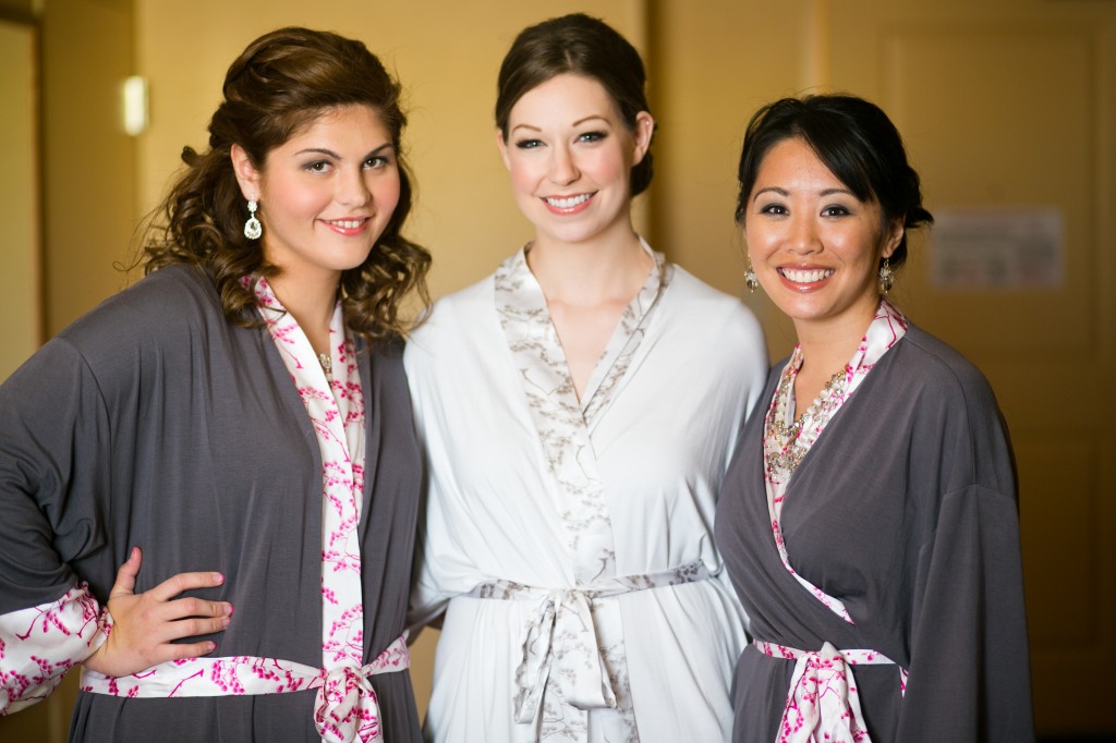 After helping brides, for years, select the perfect robe combinations for their weddings, I was thrilled to be picking out robes for my own big day. While I usually gravitate towards darker colors, when it came time for me to choose, I felt that the pastels worked perfectly for my spring Wine-Country wedding. Spending the day getting ready in beautiful, comfy, robes, with friends that I’ve had since childhood, was the ideal way to spend the hours leading up to the wedding. Everyone was so comfortable and relaxed around me, that I felt completely calm and was able to fully enjoy the pre-wedding fun.